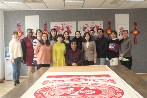 为丰富留学生校园文化生活,体验中国传统艺术魅力。1月18日,国际教育合作学院与北辰区集贤里街社区联合举办“共享中华文化剪纸”活动。12名中美学生参与活动。活动邀请到了非物质文化遗产传承人赵德宝为学生讲解剪纸艺术。