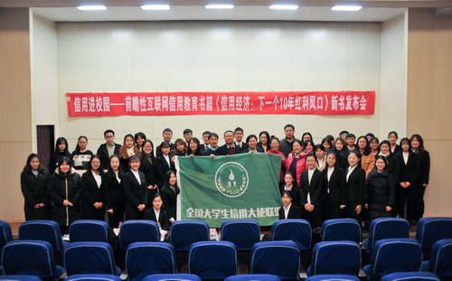 12月27日下午,“信青年”信用进校园——前瞻性互联网信用教育书籍《信用经济:下一个10年红利风口》新书发布会在经济学院召开。电子工业出版社博文视点-互联网生态分社社长张彦红,原蚂蚁金服高级运营、新书主编纪森森,北京宜信致诚信用管理有限公司副总经理、全国大学生信用大使联盟秘书长张晓燕,经济学院副书记张玉娟,金融系主任刘红霞,副主任刘玲,信用管理专业部分师生参加。
