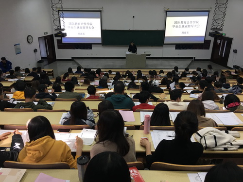 为进一步引导学生正确认识当前的就业形势,树立正确的择业观、就业观,提高学生的就业能力。10月26日下午,国际教育合作学院在国际教育交流中心E303召开了2019届毕业生就业指导大会,辅导员刘海东以及200余名酒店管理(中美合作)专业毕业生参加了本次大会。