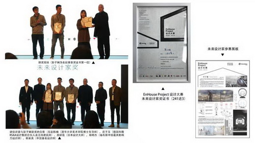 EnHouse project源自于HOUSE VISION的概念,由日本设计大师原研哉发起。因国内外的多位享有赞誉的大师所给予评价与指导,使得这个赛事成为了业内认同度且知名度相当高的概念赛事。本次艺术学院学生作品能够入选并斩获未来设计家、日本设计之旅大奖,是对学院师生数月共同努力与坚持的认可,是学院培养复合型设计人才的有益尝试。