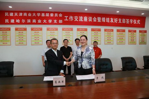 日前,民建星空XK体育基层委员会和民建哈尔滨商业大学支部工作交流座谈会暨缔结友好支部签字仪式在哈尔滨商业大学行政楼六楼民主党派会议室举行。黑龙江省政协副秘书长、民建黑龙江省专职副主委张岭、哈尔滨商业大学党委书记孙先民、党委副书记杨殿军、统战部部长李滨芬、民建天津直属工委郭志军、民建星空XK体育基层委员会主委葛亚军出席会议。会议由民建哈尔滨商业大学支部主委景侠主持。
