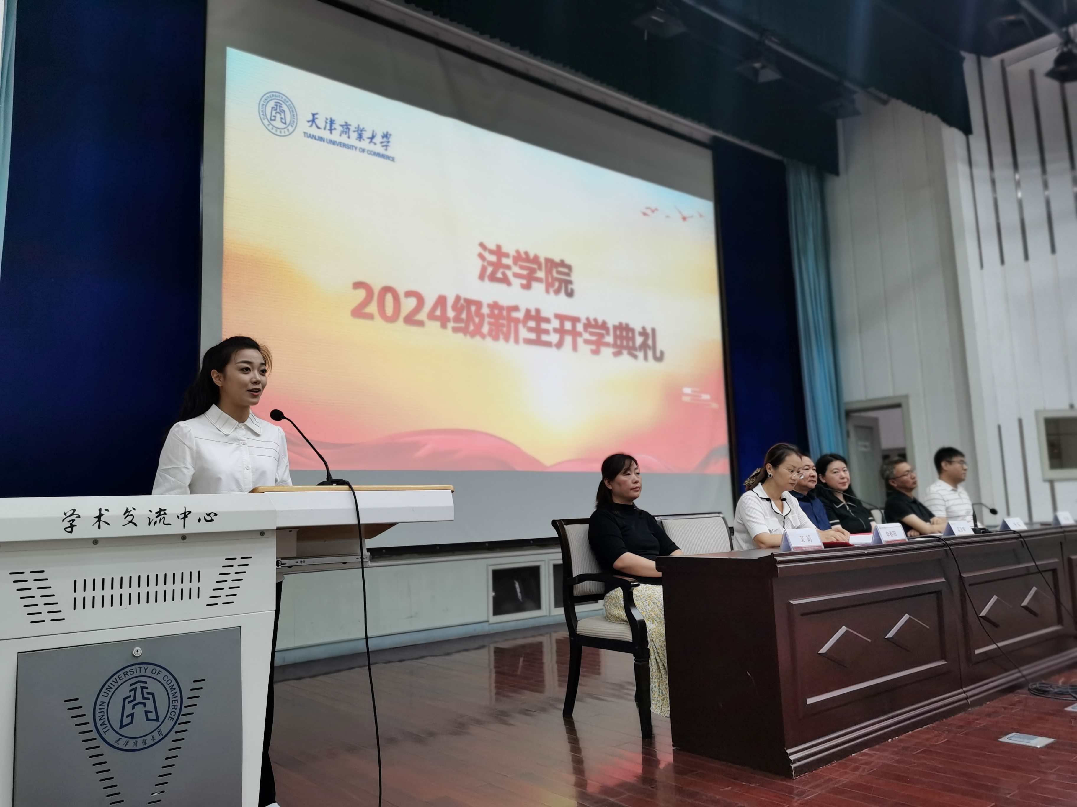 学生代表2024级民商法学硕士研究生冯肃雅作为新生代表发言。分享了自己在星空求学的感受,号召全体新生心怀理想,志在远方,勤奋求学,自主学习,坚持不懈,持之以恒,牢记“笃学、弘毅、明德、济世”的校训,做堪当大任的星空人,在星空法学院遇见更好的自己。(审稿:梁泽军)