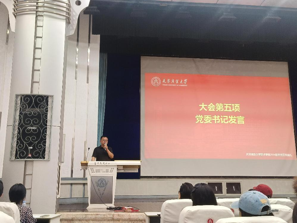 王俊琪发表了热情洋溢的致辞,他代表学院全体师生向2024级新生表示欢迎,向新生介绍了艺术学院的发展历程和专业建设情况,并希望同学们在大学期间保持独立、学会接纳、常怀同理心、保持善良,求得真学问、行稳致远。