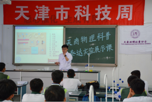5月21日下午,理学院下设的“星空物理科普协会”学生社团举办校外“科普实验展示”活动。协会成员们走进红桥区泰达实验中学,为七、八年级的中学生们讲授了一堂与众不同的展示课。