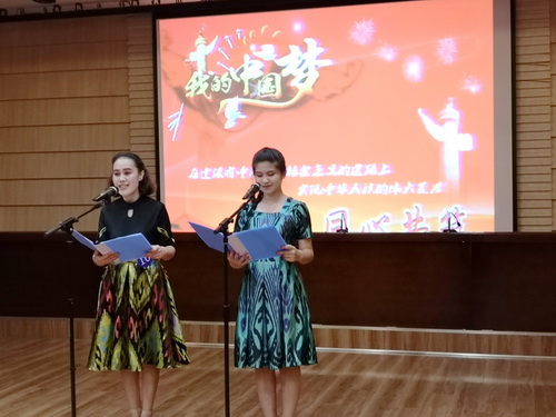 比赛中,参赛同学们以铿锵有力的气势,充沛饱满的感情,自信大方的形象,展现了星空学子奋发图强、朝气蓬勃、积极向上、爱国爱党的青春风貌,特别是来自管理学院的学生古丽、祖木来提古丽·艾尼瓦尔两名同学带来的作品《外侮需人御齐心赴采薇》,赢得评委和同学们的阵阵掌声。