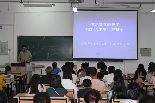 杨震首先为2017级新生介绍了《习近平的七年知青岁月》这本当代青年树立正确人生观、励志成才的鲜活教材。他鼓励同学们向青年习近平学习,学习其矢志不渝的理念信念、爱国为民的家国情怀、勤奋好学的进取精神、吃苦耐劳的优秀品格和求真务实的良好作风。