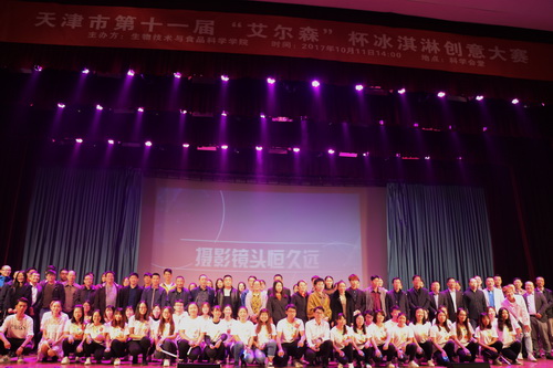 10月11日下午,由生物技术与食品科学学院承办的以“冰韵沁凉,品淇茗香”为主题的第十一届“艾尔森”杯冰淇淋创意大赛决赛在科学会堂圆满落幕。学院党委书记孙文利、院长张坤生、副书记王好军及各专业老师出席本次大赛。天津艾尔森生物科技有限公司、天津农学院、天津现代职业技术学院、天津大桥道食品有限公司、天津康乐食品有限公司、沈阳中街食品有限公司、山东华英食品有限公司等50余家企业和学校代表担任评委嘉宾。全校近千名学生现场观摩。