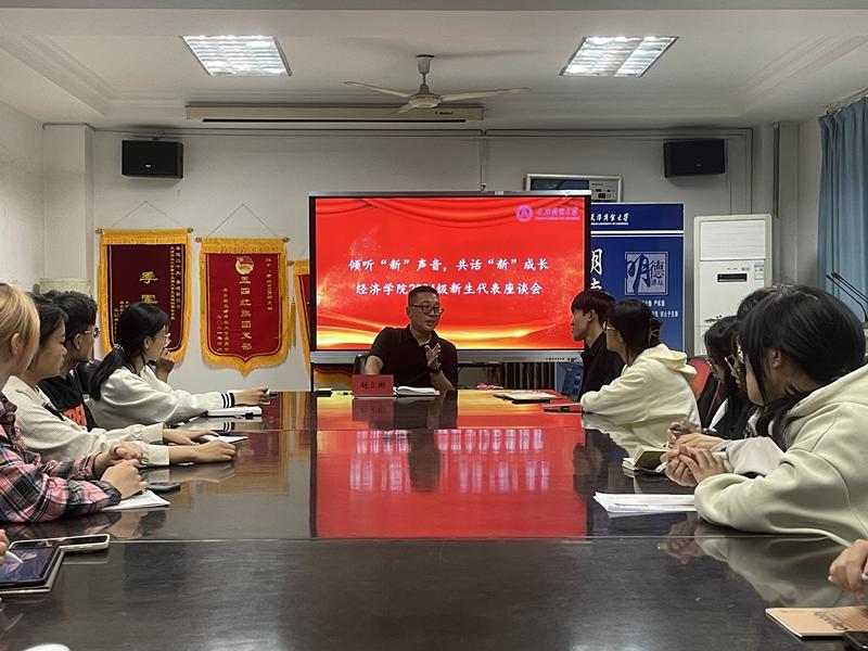 为帮助新生更好地适应大学校园的学习生活,9月20日下午,经济学院在三楼会议室举办“倾听‘新’声音,共话‘新’成长” 2024级新生代表交流座谈会。经济学院党委副书记赵立彬,2024级新生辅导员李广宗、郭丰浩,以及新生代表30余人参加本次活动。