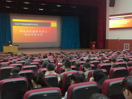 为进一步加强毕业生实习教学管理和就业安全意识,规范毕业论文写作、增强学术道德诚信,10月31日,经济学院在科学会堂召开 2018 届全体毕生会议。学院副院长梁学平、教务办公室主任边士洪、教务秘书陈二培、辅导员王素芳参加了会议。