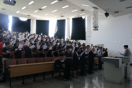 随后,双方教师代表以及学生代表分别发言。在Elizabeth Wesner的带领下,大会举行了庄严的宣誓活动和授旗仪式,并将现场气氛推向了高潮。典礼在全场人员的热烈掌声中落下帷幕。