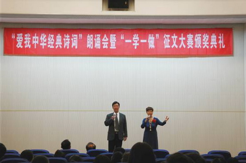 为总结“一学一做”的阶段性成果,积极加强对团员青年的思想引领,5月31日下午,由校团委的“爱我中华经典诗词”朗诵会暨“一学一做”征文大赛颁奖典礼在七教二楼报告厅举行。校团委书记辛佳澎参加活动。