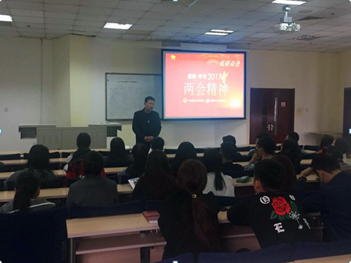 冯延超表示,“少年强,则国强”,中外合作背景下的青年学生更应该时刻牢记自己的身份和责任,培养家国情怀和爱国精神,自觉肩负起传承中华优秀文化的使命。马京京对十二届全国人大五次会议和全国政协十二届五次会议的重大成果,以及两会的机构设置、历史沿革等进行了详细介绍和解读。与会同学集中学习了《2017年政府工作报告》,观看了政协委员谈坚定文化自信、讲好中国故事等励志视频,并进行了热烈充分讨论和发言。