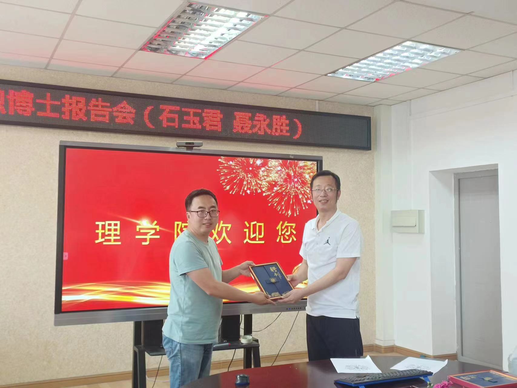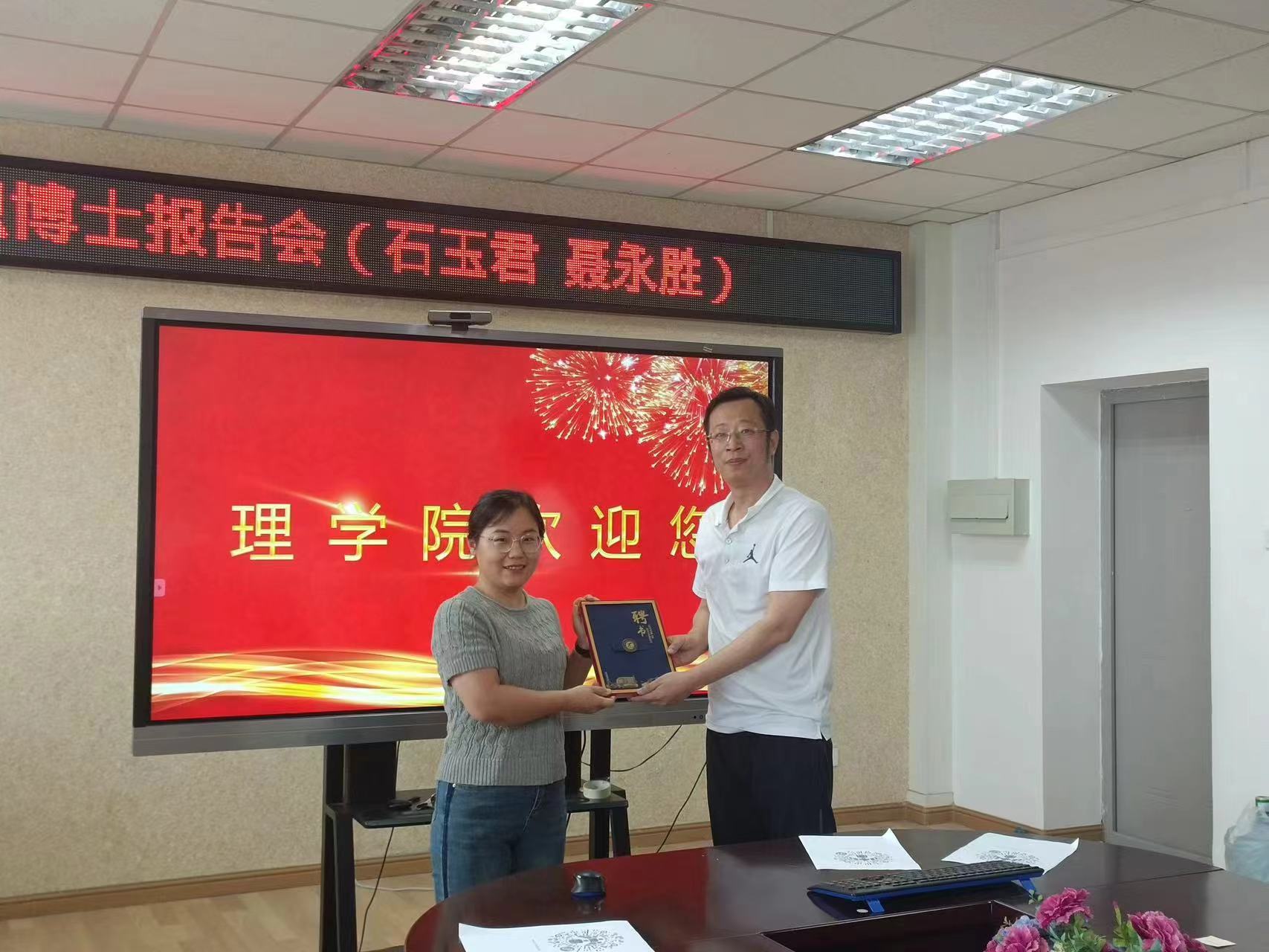 5月23日,理学院在1号教学楼806会议室举行石玉君、聂永胜博士入职学术报告会。学院领导班子成员、青年教师及研究生参加。报告会由统计系青年教师藏媛主持。
