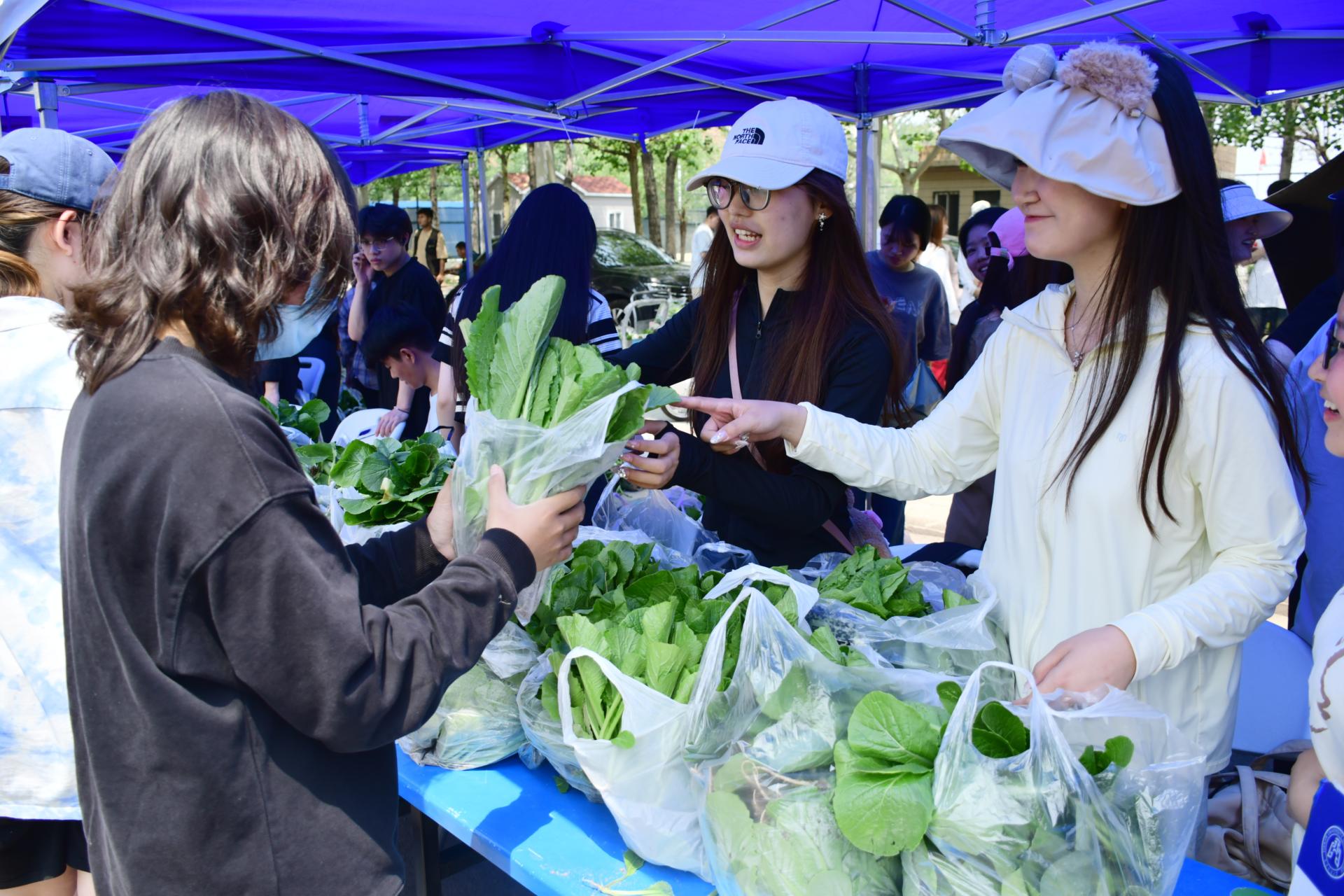 “我在星空有块田,信息‘白菜’味道甜”“汇聚新鲜好菜,乐享国教生活”“外院甄选”等等……各学院结合自身特色设计口号,吸引了许多来往的师生驻足观看和购买,现场氛围轻松欢快、热情高涨。同学们积极创新销售方式,有些推出“买三送一”“买五送二”等组合优惠,有些走进食堂主动推销,有些提供“送货上门”服务,在亲身实践中体会到了劳动成果丰收的喜悦。