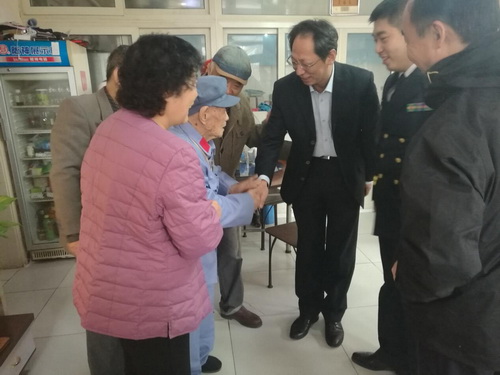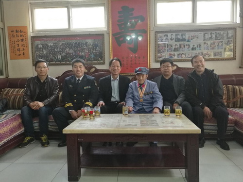 当天上午,在天津警备区第一干休所一幢整洁的二层小楼内,见到了精神矍铄的彭焕生老同志,彭老今年106岁是天津年龄最大的百岁老红军,曾参加二万五千里长征。听说有人过来看望,就早早地穿上了绿军装等待我们的到来。彭老给大家讲述了当年革命的事迹:爬雪山、过草地,十分艰苦,缺衣少粮,吃皮带、穿草鞋。但在这种异常艰苦的条件下,战士们凭着坚强的意志,心怀信仰,取得了最后的胜利。彭老勉励大家说:“要胸怀社会主义伟大理想,追随党的指引,吃苦耐劳,勇于担当,做为人民服务的好党员,好同志”。