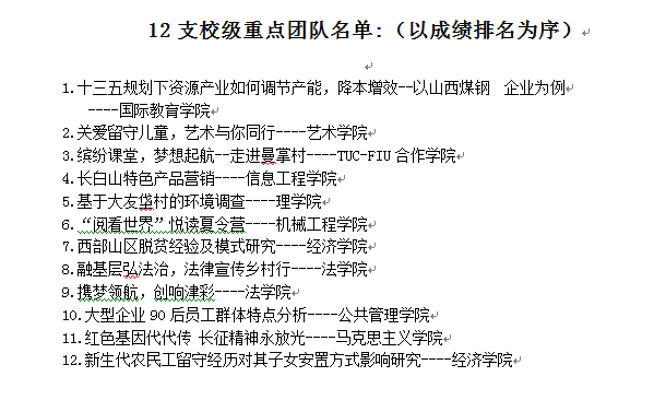 2016年校团委继续组织全校青年团员开展暑期社会实践活动,21支团队在暑期赴全国各地开展实践活动,并顺利结项。为了实现暑期社会实践团队评审进一步科学化、规范化,校团委进一步完善暑期社会实践活动考评机制,首次尝试了校内专家评审、校外专家评审和媒体宣传三者相结合的方式,对21支团队的实践成果进行审核。
