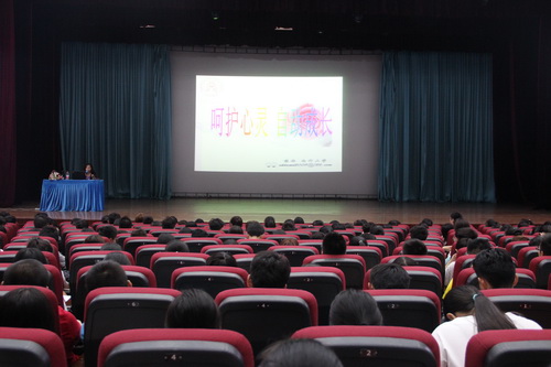 袁辛教授主要从大学生学业、情感、健康、职业规划等方面,通过案例讲解、理论分析与现场互动等多种形式将生动、真实的心理学知识传递到大家的脑海里和心灵深处。她利用电影演绎人类心理引导大家去思考分析,引导同学们向完美努力,向终极完美说再见,做最好的自己。通过“大学何为”这个论题启发大家思考,通过名校校长及名人语录重点阐述了大学应该学什么,应该怎样做,怎样去选择,怎样更加幸福。从安全与健康方面入手,通过李开复和身边真实案例告诉新生们饮食健康、锻炼身体、健全心智的重要性;同时以真实的案例,教育新生要珍爱生命,珍惜健康,养成良好的生活和作息习惯。通过《中国好歌曲》中蒋瑶嘉的案例告诉大家要确立正确的目标、规划好自己的学业生涯,做自己人生的指挥官。通过视频《未来扑面而来》,叮嘱同学们要不断努力,适应世界的变化。最后,袁辛教授以“我对自己说”的现场互动把气氛推向了高潮,在大家洪亮的声音中圆满结束了此次讲座。