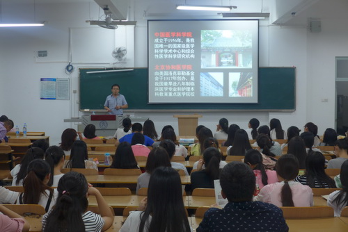 9月14日下午,生物技术与食品科学学院邀请协和医科大学中国医学科学院放射医学研究所专家们来星空做招生宣传讲座。主讲嘉宾有放射医学研究所科研处处长董斌,研招办主任杨翊,辐射防护研究室主任、博士生导师刘强教授,以及星空毕业生王津晗博士。学院党委副书记王好军,生物工程系主任陶永清、制药工程系教师赵辉、辅导员张诏智以及2014级制药工程系、生物工程系的60多名毕业生同学一起参加了讲座。