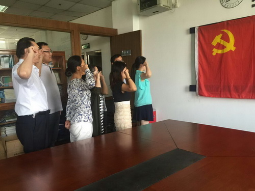 7月1日上午,学院全体教工党员集体观看了庆祝中国共产党成立95周年大会实况直播,学习习近平总书记在大会上的重要讲话精神。下午,学院教工党支部书记任红为全体教工党员讲专题党课。专题党课后,全体教工党员起立,面对党旗,举右手齐肩握拳,在教工党支部书记任红的领誓下,重温入党誓词。此项活动旨在让老党员重温入党誓词,回顾入党宣誓时的庄严承诺和坚定决心,提高政治觉悟、增强党性意识,以更加饱满的热情发挥共产党员的先锋模范作用,永葆共产党员的政治本色。