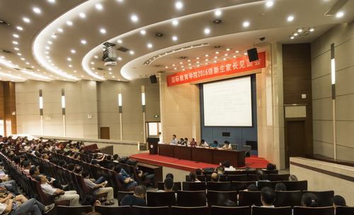 9月3日下午,国际教育学院2016级新生家长见面会在图书馆三楼国际报告厅举行。院长乔秀梅、党总支书记方雷,教学秘书、辅导员、2016级新生班主任以及200余名新生家长参加了见面会。