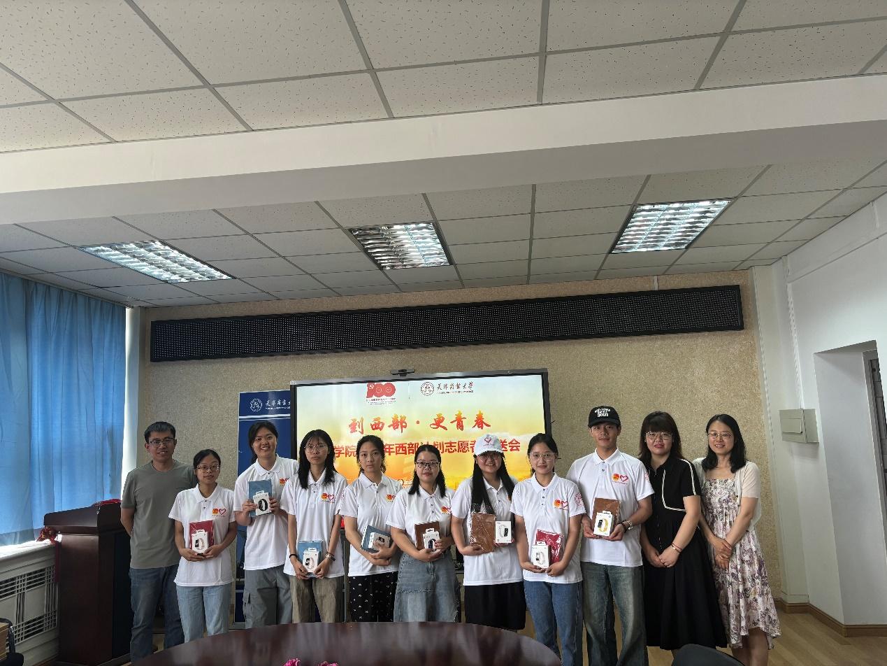 会上,九名西部计划志愿者逐一讲述了加入西部计划的初心和未来的人生规划,表达对母校培养的感激之情,表示将用实际行动践行责任与担当,用青春与汗水为祖国发展贡献力量,为母校增光添彩。