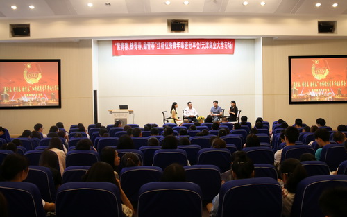 报告会通过访谈的形式进行,六位嘉宾与在座大学生进行了互动交流,他们向大学生分享了成长历程和感人事迹,展示了红桥优秀青年的精神风貌,还就创业、提高大学生法律意识等问题给同学们提出了建议。