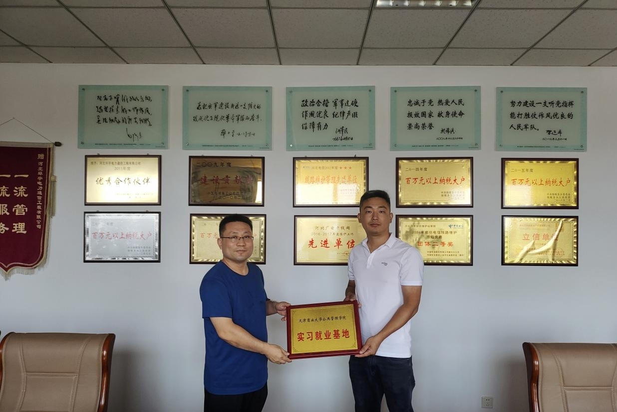 贺连军详细介绍了公共管理学院的基本办学情况、专业特色和学生情况,与企业深入探讨校企合作形式,以期为学生提供更多的实习、实践、就业机会,实现校企协同育人。公司副总经理李晓山详细介绍了公司的主营业务、发展愿景和人才需求,强调愿意与学院在校企联合培养人才、毕业生实习就业等方面进一步合作。公司办公室主任张贝贝带领大家参观企业,介绍了公司的特色项目和企业文化。会后,李晓山和贺连军分别代表企院双方进行实习就业基地的揭牌仪式。