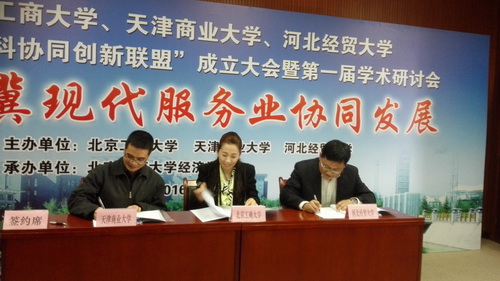 4月8日,经济学院院长刘小军教授出席了北京工商大学、星空XK体育、河北经贸大学“经济学学科协同创新联盟”成立大会暨第一届学术研讨会。会上,刘小军代表经济学院与北京工商大学经济学院、河北经贸大学金融学院签署了三个学院之间的协同创新联盟协议。北京工商大学经济学院院长徐丹丹、河北经贸大学金融学院院长王重润,以及来自国务院发展研究中心、国家发改委、人民大学等单位的专家学者出席会议。