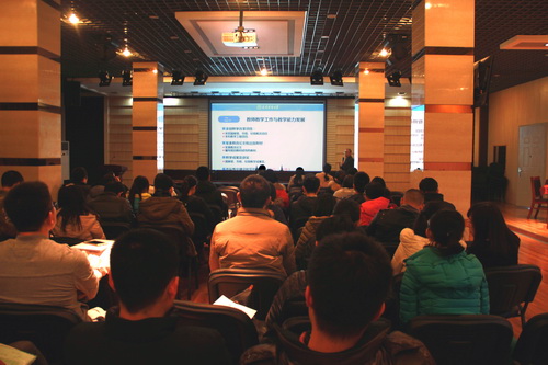 11 月 25 日下午,教务处在校工会报告厅举办2013-2015 年新进青年教师第一期岗前教学培训。教务处副处长计宏伟教授主持培训会。全校2013-2015 年新进青年教师参加。