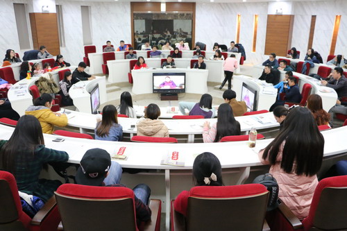 下午在图书馆明德厅进行了校报记者团 20 周年庆的第三项活动——新老团员座谈会。宣传部副部长于俊如,校报记者团第一任指导教师袁军,第二任指导教师张克明和现任指导教师杨璐伊以及 98 级 -15 级共计 80 余人参加座谈。