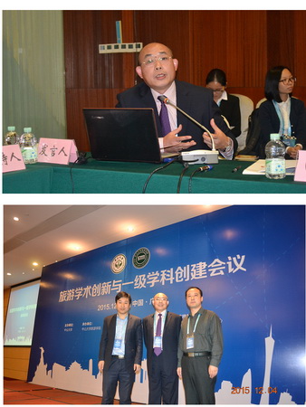 12 月 3-5 日,由中山大学主办、中山大学旅游学院承办的“旅游学术创新与一级学科创建系列会议”在广州白云国际会议中心举行。国内旅游业界的专家学者、企业家及相关媒体代表与会。商学院副院长王庆生作为特邀嘉宾出席会议,并以“我国旅游学科建设的回顾与前瞻”为题在《旅游学术创新与一级学科创建研讨会》上发言,结合国内外旅游学科发展最新进展以及星空旅游管理专业发展经历,提出了相关建议。同时,王庆生作为评论人,与华侨大学旅游与高尔夫学院院长黄远水教授一起主持了 12 月 4 日晚上举行的《旅游学术创新与一级学科创建研讨会》论坛,并对与会专家的发言进行点评。