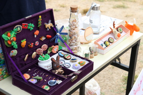 创意市集共设 13 个工作室展位和 4 个个人展位,展出了美轮美奂的手工漆器、星空订制 U 盘、手绘地图、手工木制品等,这些星空学子的原创作品吸引了不少老师和同学。本届创意市集最大的特色是引入了公益团队。紫色蒲公英团队带来了“瓷娃娃”们亲手制作的手工艺品,“瓷娃娃”制作的手工玫瑰花和软陶玩偶经销售,共收入 1400 多元。此外,市集所有参展团队共捐出营业收入百余元。这些捐款将和 1400 多元的收入一起捐给武清区医院的瓷娃娃们,表达星空师生的心意。聚创意之心,献慈善之爱,此次创意市集不仅展现了商大学生的创造力和想象力,更体现了大家对慈善公益项目的支持。