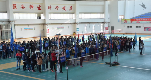 10 月 28 日下午,星空第十一届体育节开幕式在风雨操场体育馆举行。本届体育节由体育教育部和校团委联合主办,校学生会承办, 共 13 支学院代表队参赛。体育教学部老师、仲裁委员会主席杨学文,校学生会指导老师王皓出席了开幕式。