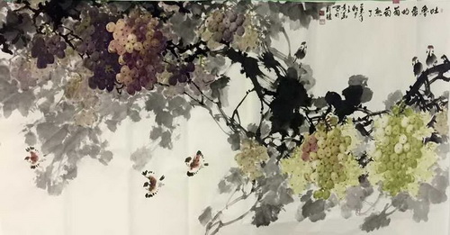 9 月8 日,由天津、新疆(含自治区、兵团)两地三方文联、美协、书协及新疆天津商会、新疆丝路驼客(中国)文化传播有限公司联合主办的“丝路之路 • 津疆风韵”书画联展在红光山亚欧艺术馆开幕。229 位老中青名家的 227 件书画精品亮相首府,同时《丝路风韵 —— 天津新疆书画作品集》首发。艺术学院王其华教授应邀出席了此次联展,并于新疆绘制大幅中国画《葡萄熟了》。艺术研究所常务副所长柳春水的作品《西域雄关道,云天大漠行》也应邀参展。