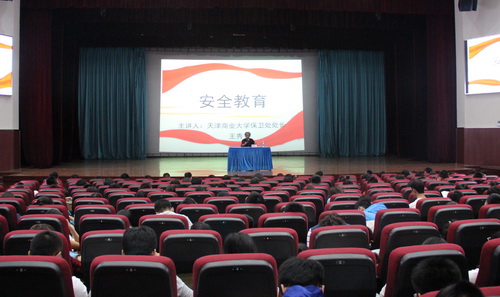 9 月 10 日下午,信息工程学院与设计学院在科学会堂共同为 1000 余名 2015 级新生举办了一堂安全教育讲座。 保卫处原处长、图书馆直属党支部书记王秀安应邀作新生安全教育主题讲座。信息工程学院党委副书记王艳军主持。信息工程学院辅导员王斌、设计学院辅导员韩志文、王琳老师与全体新生一同参加。