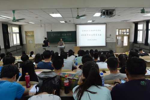 5 月 28 日 中午,生物技术与食品科学学院在阶三教室召开“铭记责任,率先垂范 ——2015 届毕业生党员工作大会 ” ,学院党委副书记孙文利、辅导员陈相霓、孙海星出席,全体毕业生党员80 余人参加了会议,学工办主任、负责学生党建工作的陈璐老师主持会议。