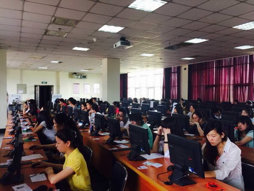 商务英语专业四八级考试由中国对外贸易经济合作企业协会、全国商务英语专业院校教学联席会、高等教育出版社主办,实行机考,截止目前全国已有 37 所高校获批考点。在国际教育学院和 TUC-FIU 合作学院鼎力支持下,外国语学院在国际教育学院电脑室进行了机房服务器配置,考试端安装,考试机测试等系列考前准备工作。 TUC-FIU 合作学院王福存老师负责本次考试的技术工作,外国语学院部分老师,国际教育学院常洁老师负责本次考试的考务。