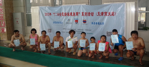 7 月 16 日至 17 日,由国家体育总局、中国游泳协会、中国救生协会在全国范围开展,天津市体育局游泳运动协会主办的 2015 年“ 7.16 全民游泳健身周”系列活动(星空XK体育站)在星空游泳馆举办,活动期间还面向校内师生和社会游泳爱好者组织开展了《全国游泳锻炼等级标准》免费达标测试活动,并为达标者颁发达标等级证书。