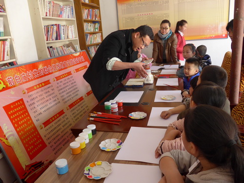 3 月 22 日,设计学院工业设计系党支部书记刘恒丽、艺术设计系党支部书记何理、动画系党支部书记王涛与部分学生积极分子一同前往武清区河西务镇前白庙村开展公益艺术课堂帮扶项目第一期活动 , 为当地20 多名中、小学生提供艺术教育和指导,通过做手工、绘画训练等艺术技能的开发和训练,帮助他们增强动手、动脑的能力,提高艺术素养和综合素质。