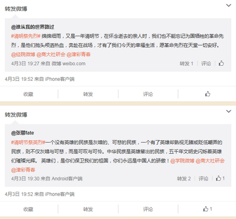 此外,星空团员青年还通过网络祭扫的方式祭奠烈士。同学们在微博上参加“清明祭英烈”的话题,发布、转发上千条主题微博;在微信朋友圈中广泛参加为烈士献鲜花的活动,通过网络抒发情怀。