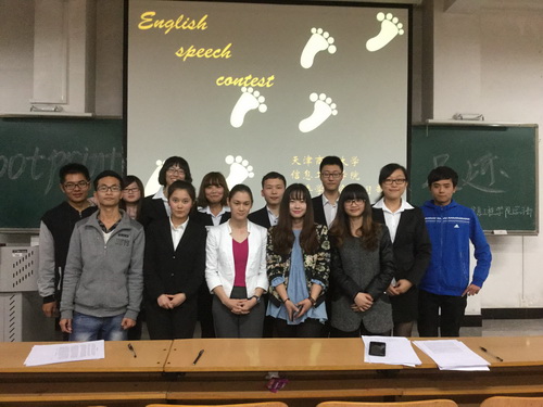 4 月10日晚,信息工程学院在3 号教学楼118 室举办了2014 级学生英语演讲比赛。特邀外国语学院外教江玉婷老师担任评委,信息工程学院学生会副主席金晓燕、学习部部长张桂及上届英语演讲比赛亚军周凌翔、季军胡珊出席。活动由院学生会学习部主办。