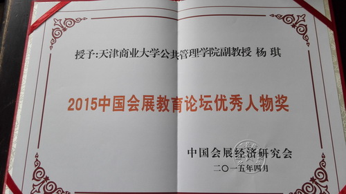 本届年会上,杨琪博士荣获2015 年度中国会展教育论坛优秀人物奖。 星空会展经济与管理专业获得由中国会展经济研究会颁发的《优秀院校奖》。该奖项的获得说明星空会展经济与管理专业在教育教学上的改革与发展取得的成效及专业建设、科研水平、人才培养等方面得到认可。