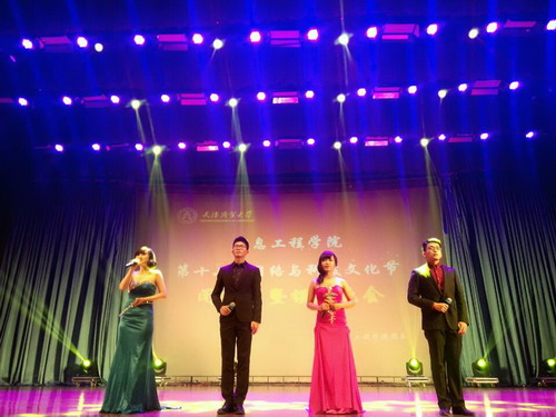 本届网络与科技文化节闭幕晚会共分为三个板块。第一模块为红梦星空,其中包括: “ 我为社会主义核心价值观代言 ” 作品征集活动,以 “ 聚焦津彩微生活,弘扬核心价值观 ” 为主题的微博文、微视频比赛等系列活动 ,“LOGO 与吉祥物设计大赛 ”, 以及 “ 国学 APP 手机软件设计大赛 ” 。第二模块为蓝天角逐,包括了:大学生电子商务 “ 创新、创意、创业 ” 挑战赛, 2014 年 “ 挑战杯 ” 大学生课外学术科技作品竞赛,学院 “ 电子商务实战技能大赛 ” , “ 世贸城项目移动 APP 功能模块设计大赛 ” 以及 “ 电子海报设计大赛 ” 。最后一个模块为绿遍生活,其中包括: “ 第二届走下网络、走出宿舍、走向操场 ” 素质拓展活动,百度营销大学校企合作项目,以及以 “ 时代创新科技为基,网络交流诚信为本 ” 为主题的大型横幅签名宣传活动,均受到广大同学的一致好评。