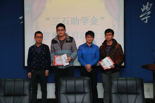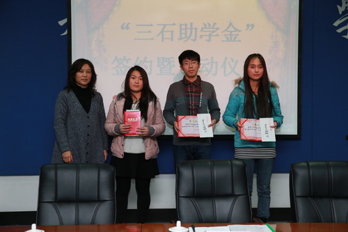 王俊和余水两位校友是公共管理学院行政管理专业毕业生。毕业后,两人通过贷款及良好的大学生创业政策加盟兰州食品品牌“宝升福”,在传统面食的基础进行了丰富和优化,目前已经成功经营两家店面,占地面积 300 多平方米,吸纳就业 20 人,其中本科及以上学历 5 人。创业初见成效后,两位校友为了回馈母校,决定在公共管理学院行政管理专业设立“三石助学金”,旨在帮助积极进取、生活上有困难的学生顺利完成学业。“三石助学金”面向行政管理专业大三学生,每学年共资助 6 人 , 资助金额总计 16000 元。其中,设立一等助学金 1 人,资助金额为 4000 元 / 人;二等助学金 2 人,资助金额为 3000 元 / 人;三等助学金 3 人,资助金额为 2000 元 / 人。“三石助学金”评选工作是由公共管理学院根据评选细则,按照 1 : 2 的比例,在坚持公开、公正、公平原则的前提下,从行政管理专业大三学生中遴选 12 名候选人,推荐给资助方,最终由资助方确定 6 名受资助对象。经过初选和复选两个环节,行政管理 1201 班的蔡林冬等 6 位同学成为“三石助学金”的首批受益者。星空XK体育校友会办公室张堃主任、“三石助学金”设立者王俊和余水两位校友、公共管理学院刘均玲副书记分别为获得一、二、三等“三石助学金”的同学颁发证书和奖金。获奖学生代表蔡林冬代表受资助的 6 名同学发言,对两位学长的支持表示衷心地感谢,并向学长和学院表示,一定继续努力学习,全面提升个人综合素养,争取用更好的成绩回馈学长的支持,将来也要向两位优秀学长那样,懂得感恩,回馈母校。最后,校友会办公室张堃主任做了总结发言,对两位校友的创业经历给予高度评价,并对两位校友创业成功后回馈母校的善举表示衷心地感谢,同时他还勉励在校学生要以优秀校友为楷模,时刻怀揣感恩之心,做一个对国家和社会有益的人才。