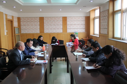 1 月 13 日下午,商学院与图书馆就联合主办《旅游与酒店管理》资讯内刊工作进展举行专题座谈,重点围绕如何利用学校图书馆资讯文献优势,支持天津市“十二五”综投品牌专业(旅游管理)建设,提升旅游管理专业(含酒店管理)大学生专业素养等论题进行了深入交流与沟通。图书馆副馆长庞恩旭、来玲研究馆员、赵霞琦副研究馆员,商学院副院长王庆生、商学院旅游管理系主任胡宇橙与会。座谈会专门邀请了商学院 2014 级、 2013 级和 2012 级旅游管理专业学生代表参加会议。