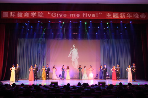 12 月 18 日晚,国际教育学院 2015 年“ Give Me Five ”新年晚会在科学会堂举办。学院全体老师,中澳本科生、中美硕士生和留学生共聚一堂,辞旧迎新。