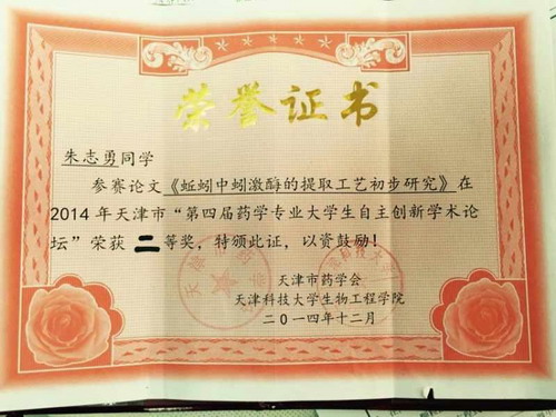 本届论坛共收到近 70 篇论文,经过专家的认真审核和修改, 59 篇论文被收入会议论文集,选出 12 篇论文在会上做了公开交流。经过专家的审阅与现场评分,评出优秀论文一等奖 4 篇,二等奖 8 篇,三等奖 10 篇,评出优秀墙报奖 8 篇。我院制药工程系学生投稿 4 篇,均被收入该论坛论文集。其中,药事管理 2011 级学生张雅婷课题组的论文“桂圆核对记忆障碍小鼠学习记忆能力的影响”(指导教师王丽娟、王勇)与制药工程专业 2010 级学生朱志勇的论文“蚯蚓中蚓激酶的提取工艺初步研究”(指导教师赵彦巧、李建颖)获优秀论文二等奖,裴高鑫课题组的论文“卵类黏蛋白过敏实验动物模型的建立”(指导教师王丽娟、韩淑珍)获优秀论文墙报奖。