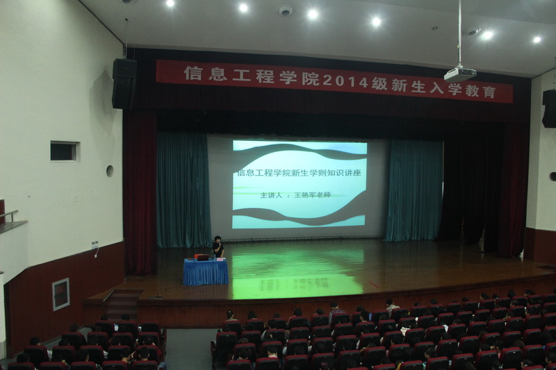 9 月 23 日 下午,信息工程学院在科学会堂举办“ 2014 级新生入学教育第五讲——《星空XK体育学生手册》解读。全体 2014 级新生参加。