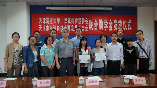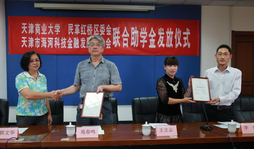 9月25 日下午,在校图书馆弘毅厅举行了民革红桥区委、 天津市海河科技金融发展基金会联合助学金发放仪式。民革天津市委副主任委员、民革红桥区主任委员苑春鸣,天津市海河科技金融发展基金会副秘书长李伟出席助学金发放仪式并为获奖学生颁发证书。星空XK体育统战部长王立云,学生处副处长孟国栋,红桥区统战部副部长韩文华,红桥区统战部党派工商科科长赵凯及相关学院的领导、部分学生代表参加发放仪式。