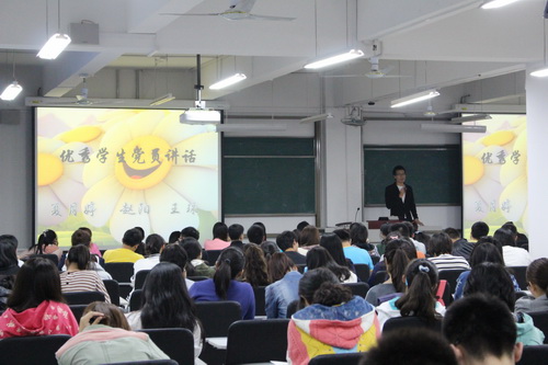 大会在《国际歌》中拉开序幕,骆媛副书记对全体新生提出了期望,希望大家能积极向党组织靠拢,并对同学们提出三点要求:将理论学习和书本学习相结合;将课业学习和社会实践相结合;将实现自我价值和社会价值相结合。她更希望全体新生时刻以一名中共党员的标准严格要求自己,在提升自我专业知识和综合能力的同时,加强对政治信仰的追求,做合格的建设者和接班人。 最后骆书记向大家强调要努力学习党的先进思想,树立正确的入党动机,努力学习,争取早日入党。